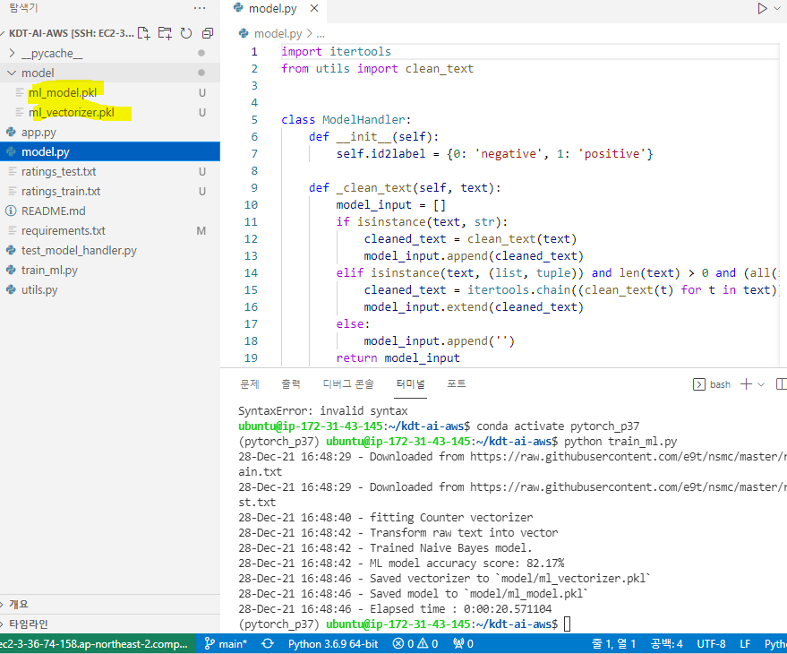 실제로 실행이 되는지 모델을 불러와서 데이터를 처리해보았다.