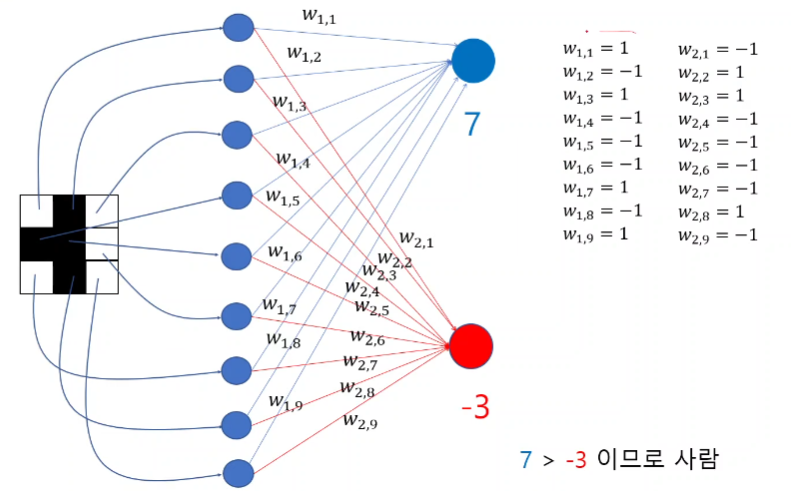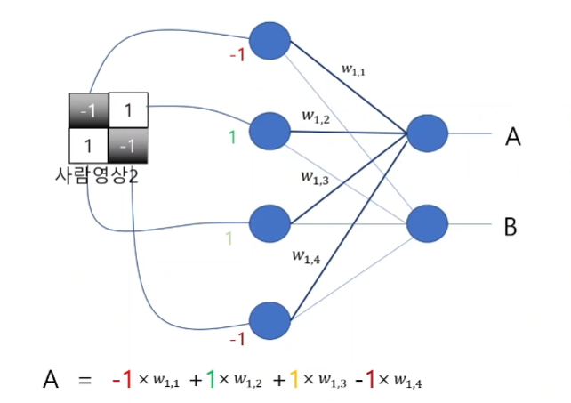 그 말은 -1과 곱하는 W11, W14의 값이 음수인 -1이며 1과 곱하는 W12, W13의 값이 1인 양수여야 한다는 것을 의미한다.