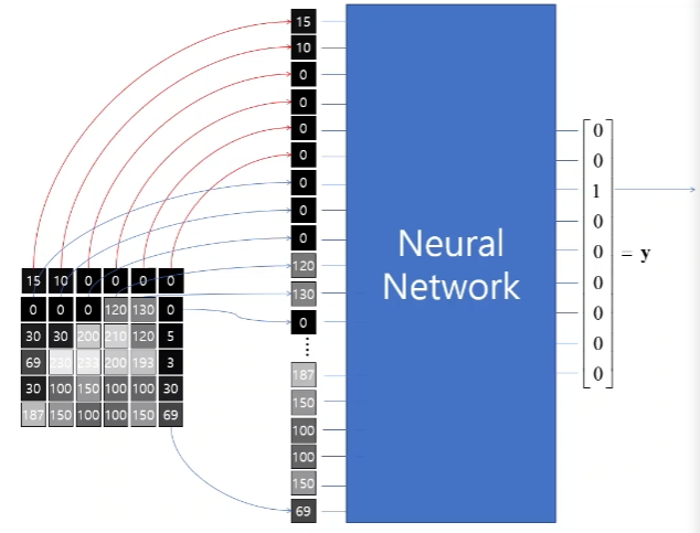 이 벡터값들을 일직선으로 나란히 배열한 후 만들어진 1차원 벡터를 신경망을 거쳐서 분류기에 도달하면 사진의 특성을 파악할 수 있다.