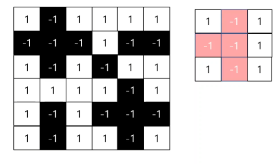 필터와 가장 유사한 부분이 큰 값이 나온다.