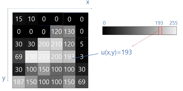 각 구역은 x와 y의 좌표 값으로 위치를 알게 되고 그 위치의 값인 U(x, y) 가 밝기 값을 가지는 요소가 된다.